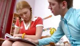 Perky red haired beauty bending over and getting her sweet hole pounded