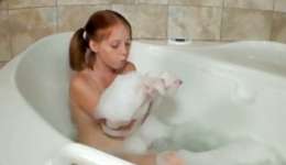 Handsome man shags in the big bath with cute teen girl